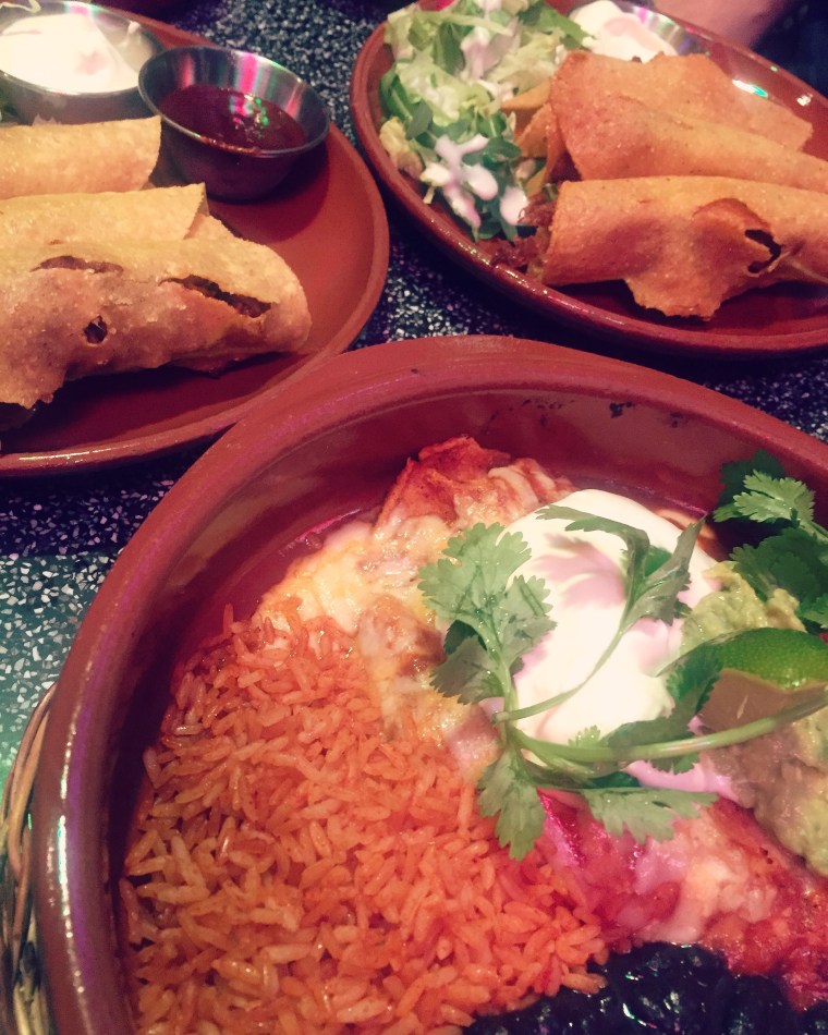 I go there to sit upstairs. It’s a quirky bar/restaurant that reminds me of NYC and has Dia de Muertos vibes. I do not go there to sit downstairs. Downstairs it is dark, dingy, and smells bad. For this reason, reservations are a must. Even if seated at a colorful upstairs table, you may find yourself venturing down to use the restroom. That would be at your own risk. It is in major need of a face lift (and more space.) If memory serves me correctly, it barely has a working hand dryer and is carpeted(!). So, stick with upstairs and, hopefully, by the time you need the bathroom, you’re already too drunk on the Margaritas Calientes to care.
