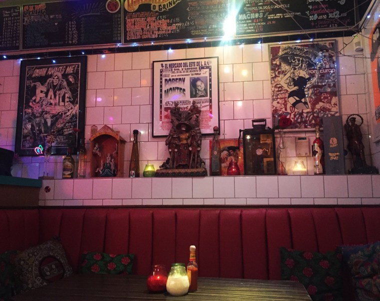 Ah, the margaritas. My fav. That, some nachos and quesadilla action, and I’m a happy girl. Everything is pretty good. Definitely on the spicy side, so beware if that is not your thing. I have to point out that they charge wayyyy too much for a side of sour cream. Sour cream is a standard accompaniment to any Mexican dish in America, so it’s hard to wrap my head around being served the littlest portion or none at all. Especially for as spicy as Crazy Homies makes their food. So be prepared to shell out a couple pounds for something that should be a given. Lastly, in regards to the actual food, skip the churros. They’re the worst I’ve ever had. Always way too overcooked and greasy. You forget that they are actually made of dough. They don’t have much more in the way of desserts, but if you’re still feeling calorie-deficient, you can load up with another margarita.