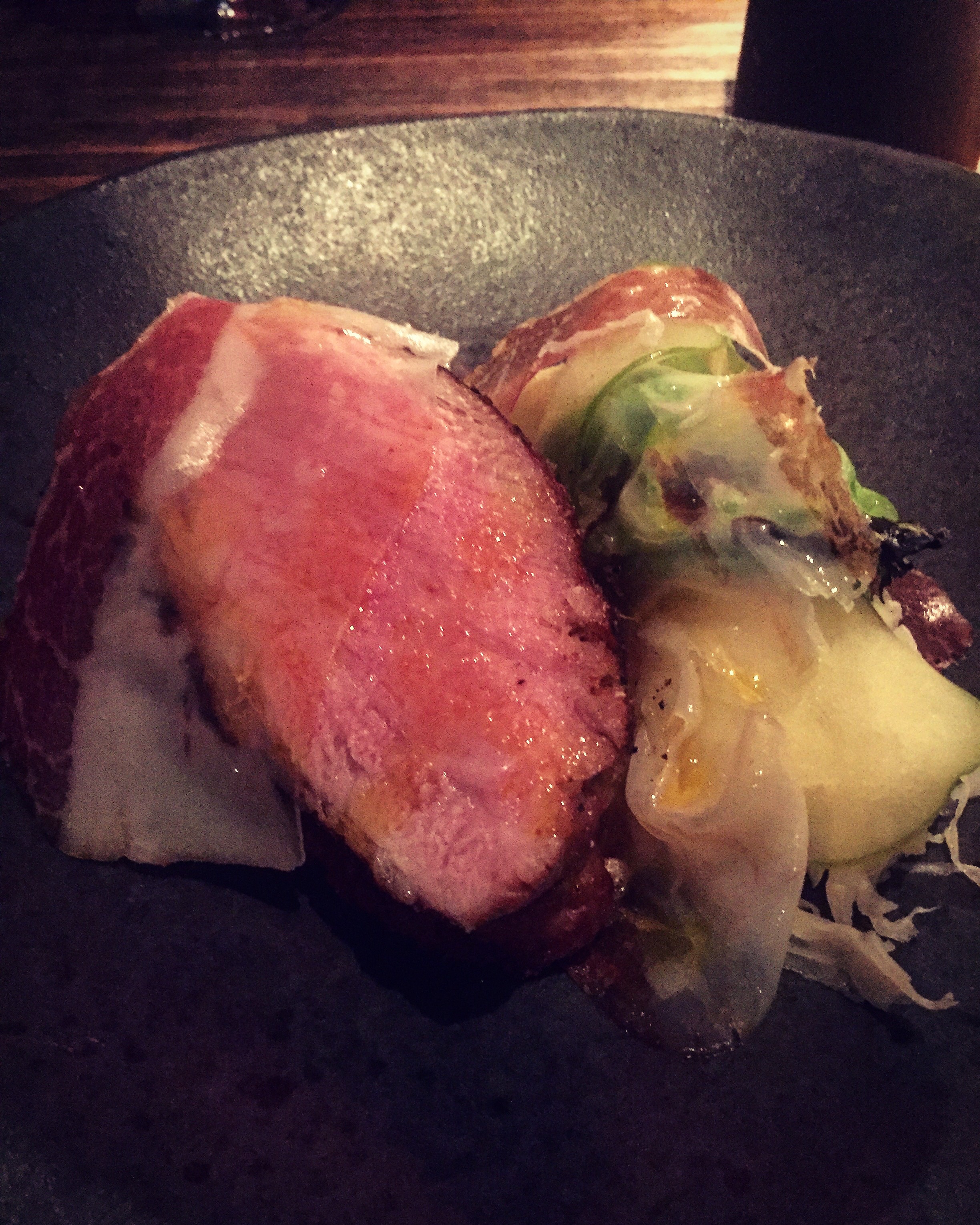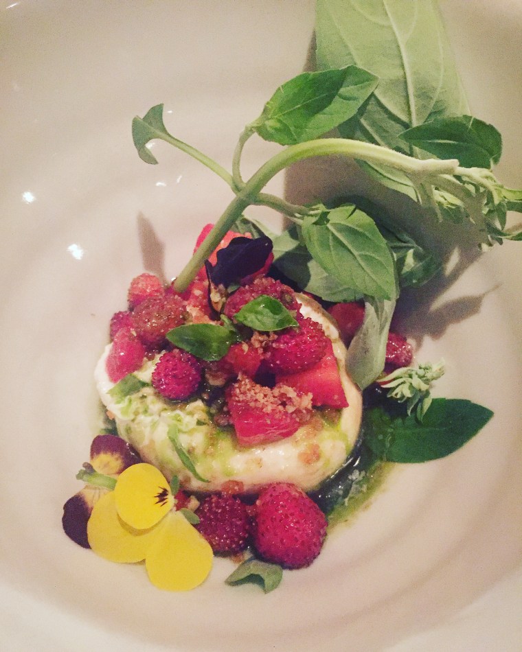 Now onto the actual food. It’s fantastic. It truly is. The price is right, the cocktails are inventive and refreshing, and the bread is fresh. Once you get on to the actual courses, you’re presented with pretty arrangements and bold flavors. I started with the burrata that was topped with dainty fresh strawberries. This was the dish that turned into a production when paired with the frozen basil. The server actually comes to your table, freezes the herb in liquid nitrogen and tells you to eat it really quickly before it gets soggy. This part is so contrived and seems like nothing more than justification for a impulse buy at the kitchenware depot. After that little hiccup, I had an AMAZING slow-cooked Iberico ham dish and followed that with the best little chocolate pudding for dessert. Literal pudding. Not England’s generic term for “dessert.”