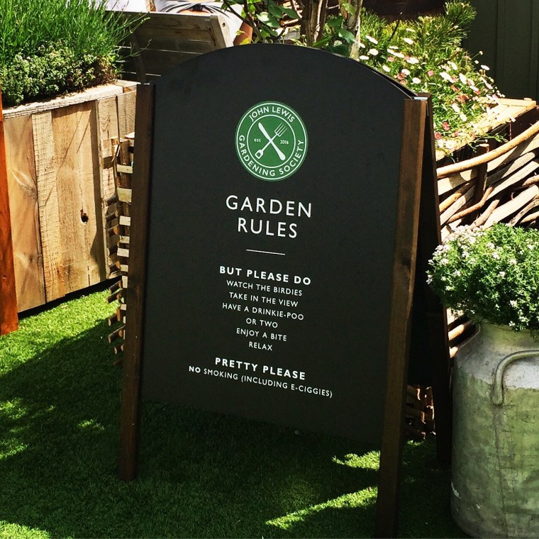 Okay, it’s a Sunday afternoon, but you’ve been neglecting some errands because life got in the way, and now you find yourself on Oxford Street buying unglamorous items  on one of the nicest days of the year. What do you do for a quick escape from reality? You head to the John Lewis rooftop for their summer Gardening Society pop up!