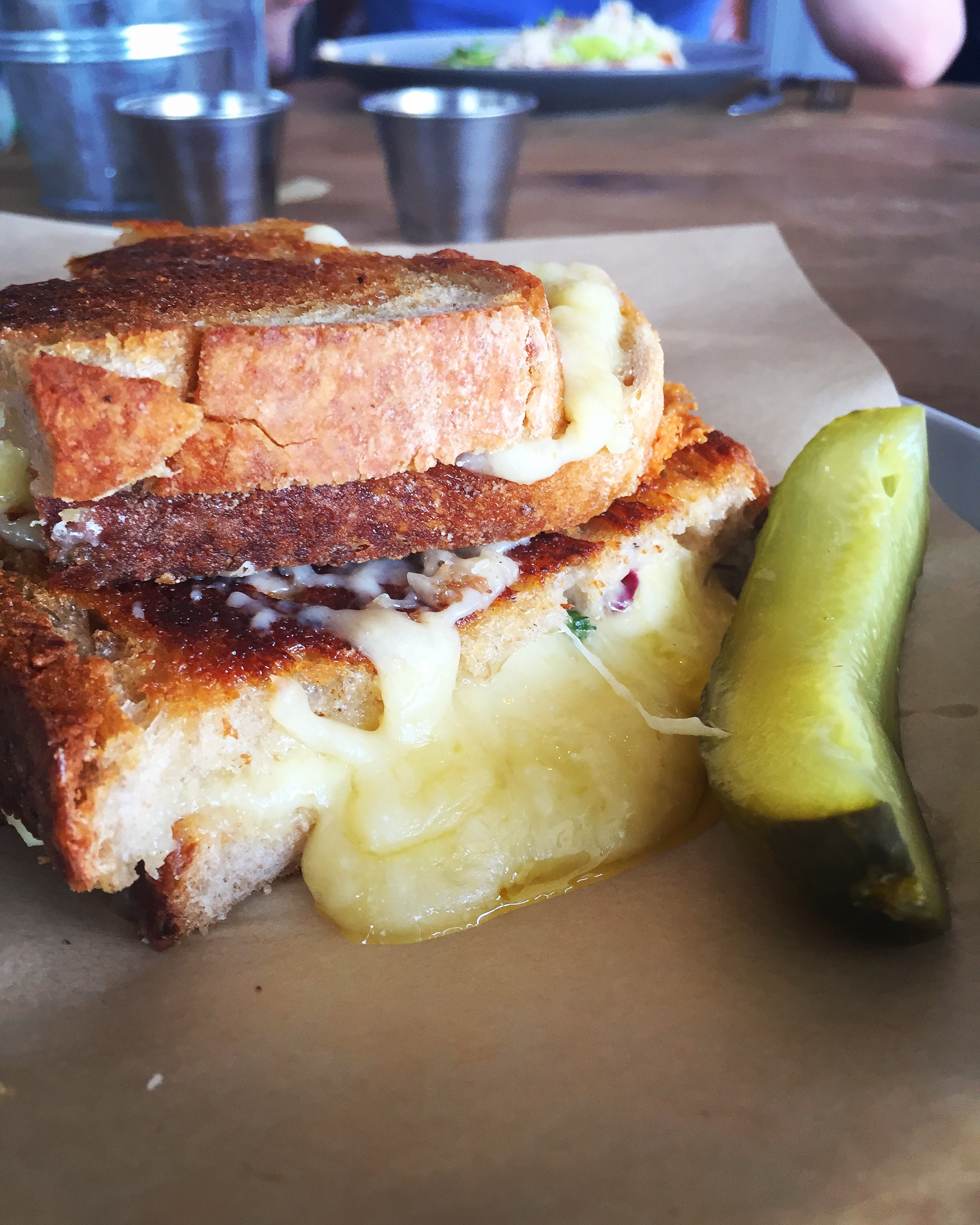 We snagged a table within the pop up restaurant, Morty & Bob’s Cafe, where we relaxed in comfortable leather chairs at a breezy covered table. The helpful servers brought us a gooey grilled cheese, healthy avocado and crab on sourdough, and perfectly crisp truffle fries. The temporary eatery offers table service as well as the opportunity to walk up to the bar and kitchen counter and order food and drinks to take back to any garden seat.