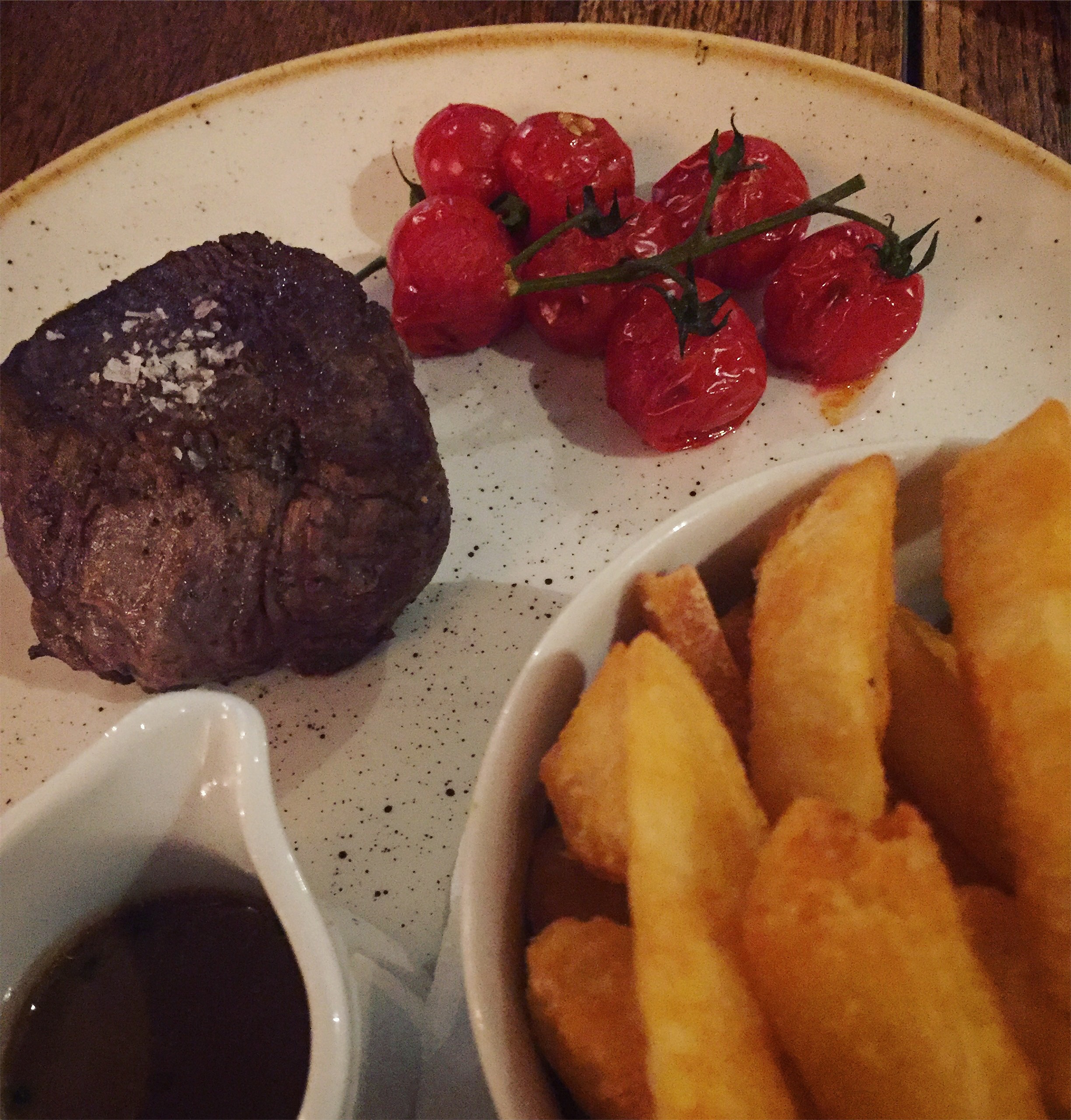 Once seated, we were faced with an extremely high-priced menu for English pub fare. This restaurant was not nice enough for prices like these. A £30 steak at a basic pub had to be fantastic (right?), so three of us took the challenge to find out. The rest of the dishes also sounded appealing, so we opted for an assortment of apps and entrees, including some oysters to start.