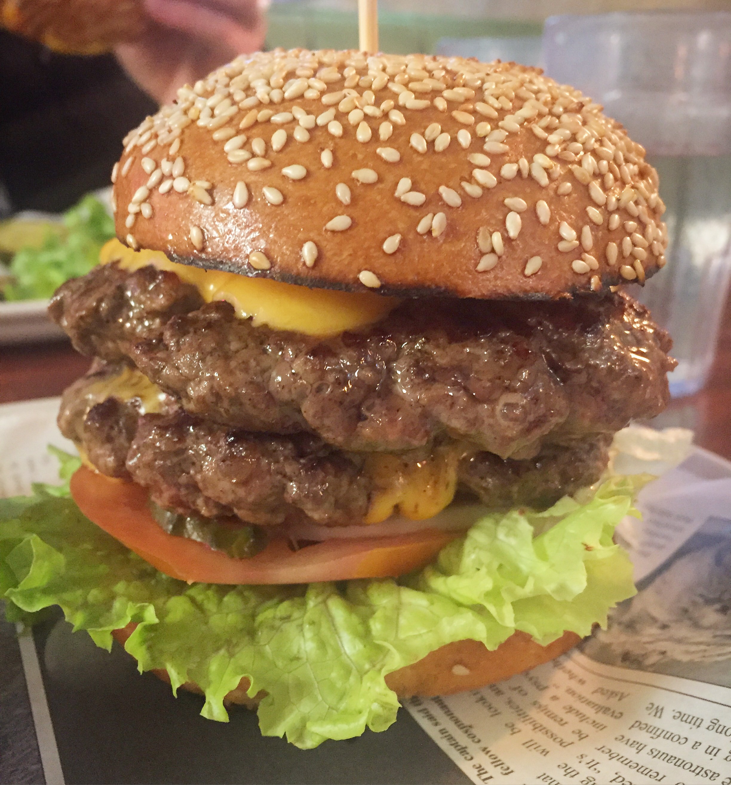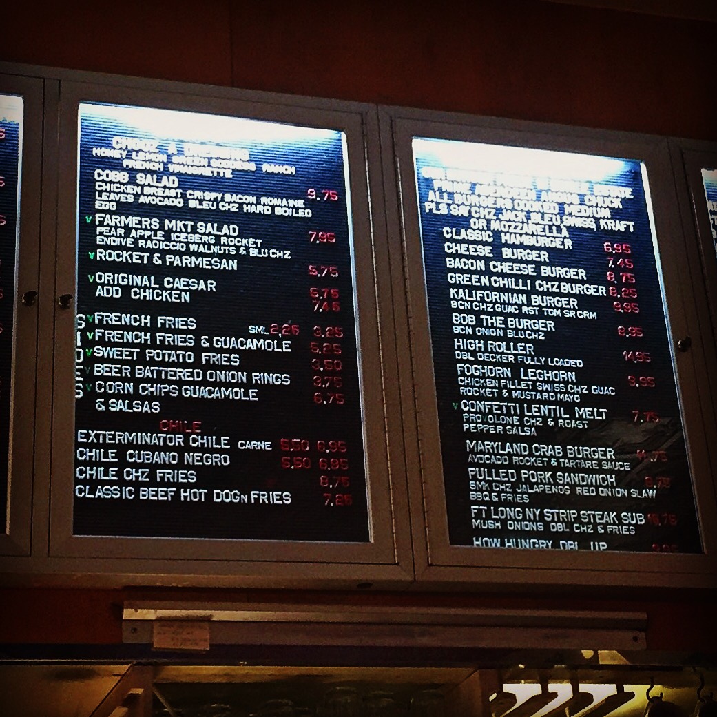 The double-cheeseburger at Lucky 7, LondonMenu boards at Lucky 7, West London