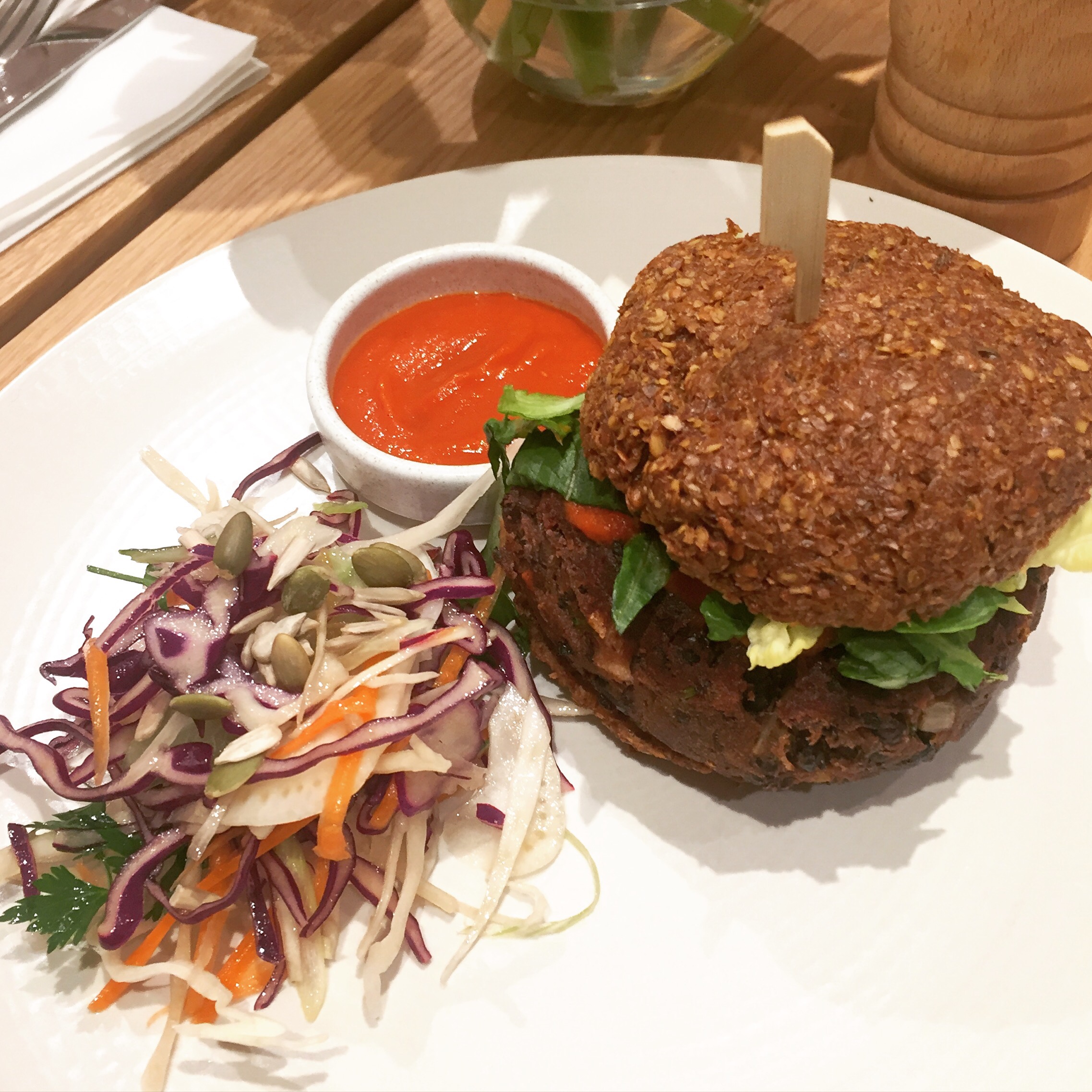 The first floor has the menswear, the second has designer womenswear and a variety of shoes, and the third has contemporary womenswear and the new Body Studio. This new area focuses on loungewear and exercise tools and attire. There is also a Hemsley Hemsley cafe within the Body Studio. This is where we had lunch during our latest shopping excursion. Hemsley Hemsley, an organic eatery, compliments the department’s healthy message, and was full of ladies lunching on vegetarian burgers and sipping cold-pressed juices. My girlfriends and I enjoyed a healthy, yet filling meal, that helped balance out our guilt for skipping Pilates and the horrible hangovers we were experiencing. Selfridges newest cafe, Hemsley Hemsley Feta and bean burger at Hemsley Hemsley, Selfridges