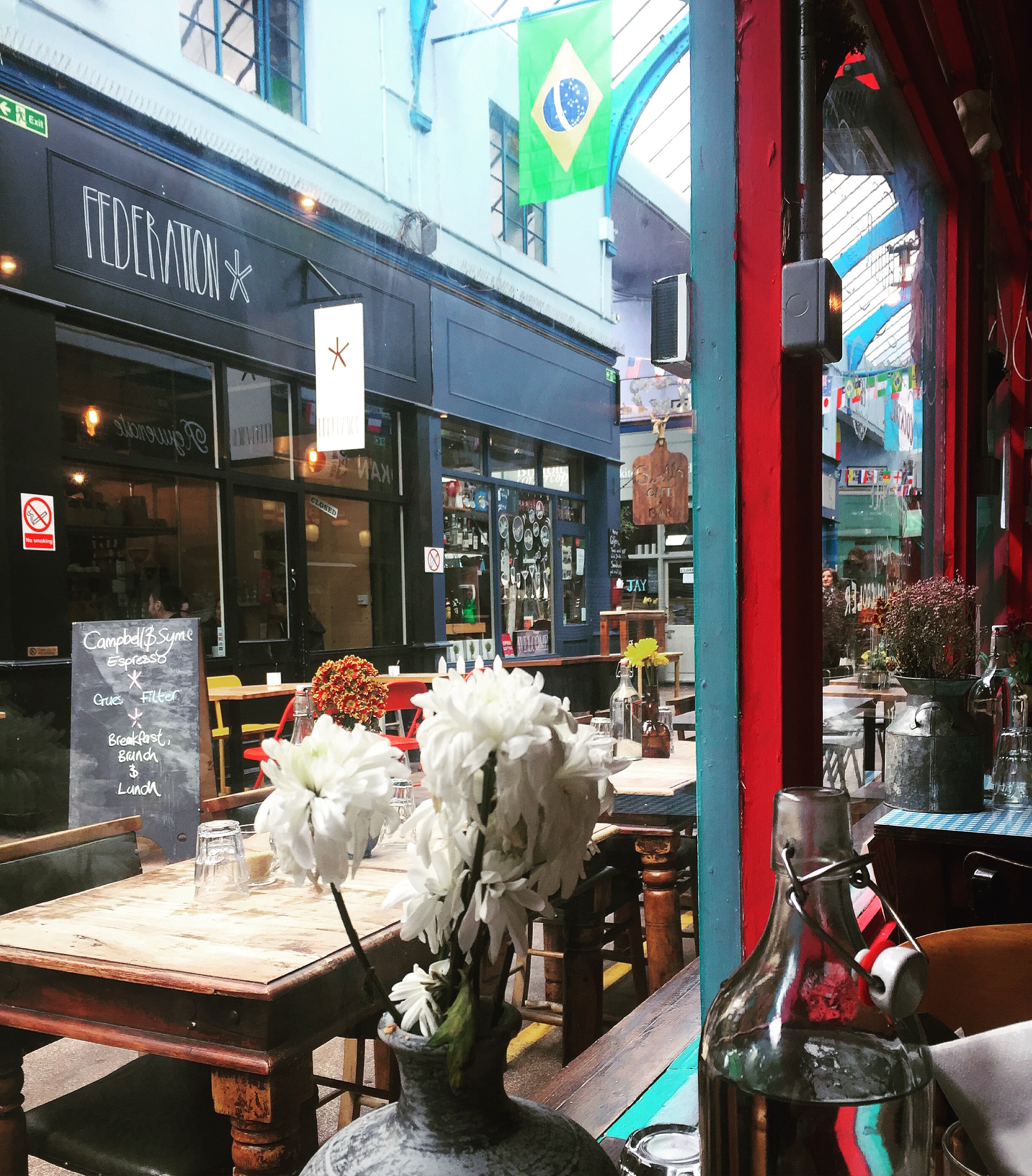 And I’m sure the other restaurants are just as adorable inside and delicious. If I had more time and a larger appetite, I would have stayed there all day, sampling all of the baked goods and cocktails, while getting lost in rows of housewares, clothing, meats, cheeses, and produce. It was enough time, however, to learn that the Brixton Village is a must-do for a very cool view of London.