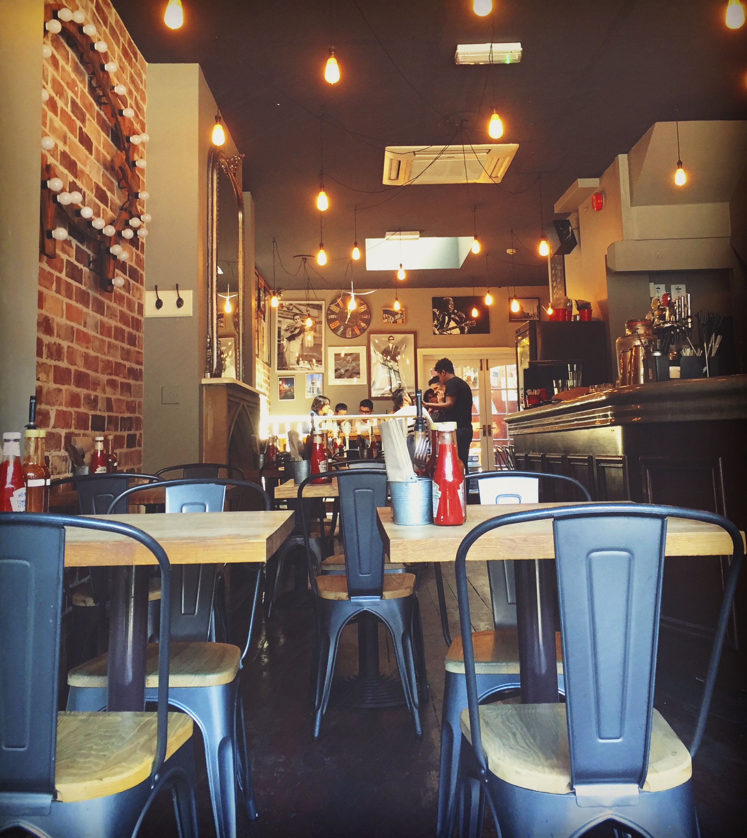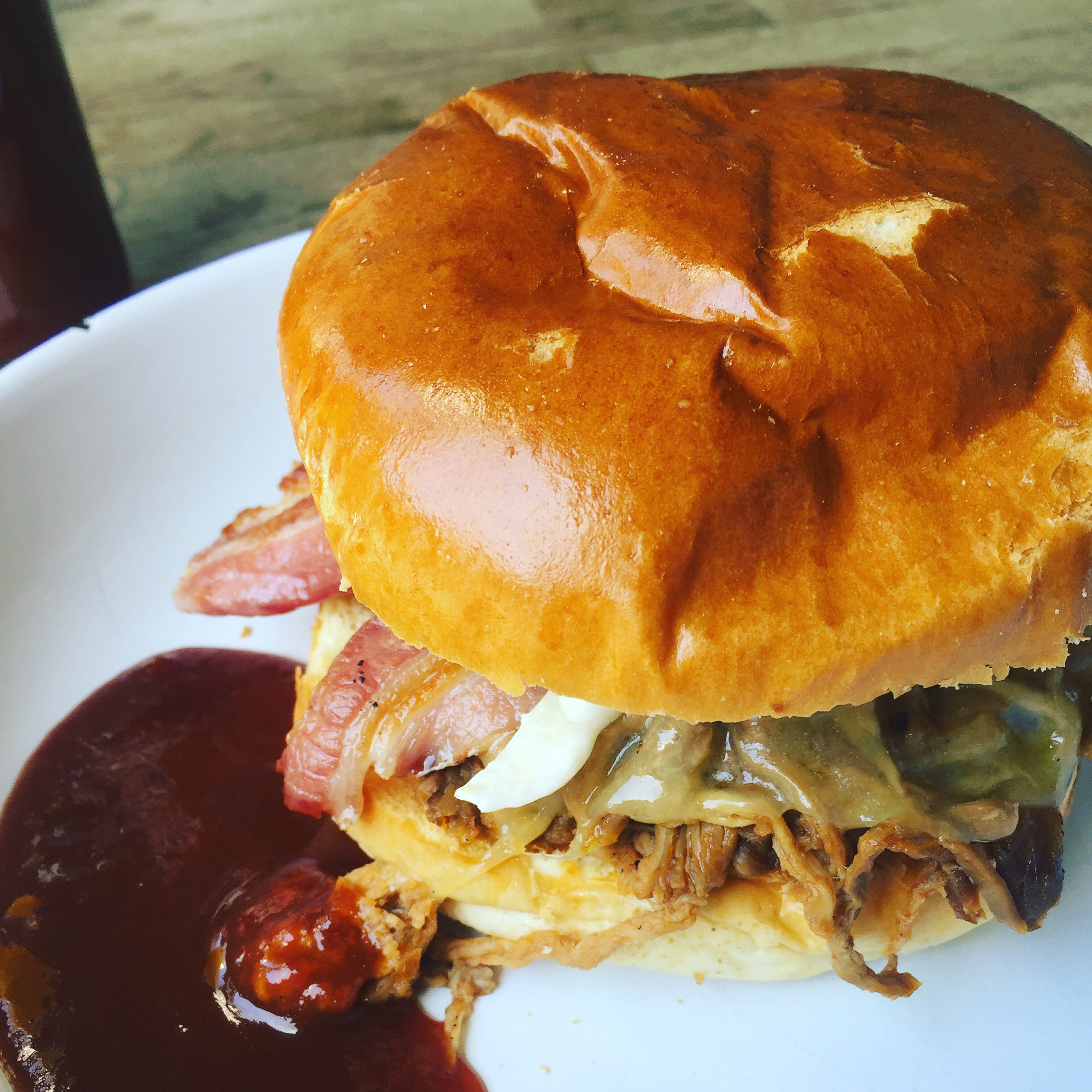 The Porky’s menu has a lot of variety. There are hot dogs, hamburgers, sides, and salads served up in classic versions or with creative twists. The Mac Porky, for example, is a pulled pork sandwich topped with bacon and mac and cheese. Amazing. But, in a pathetic effort to cut calories, I opted for “The Tangy” which was a sandwich of pulled pork, cheese, bacon, and a green chili slaw. It was delicious. The table BBQ sauces completed the sandwich giving perfect flavor to the tender, slow-cooked meat. I relaxed with my family, my sandwich, and a couple of old-fashioneds and watched the ongoings of Camden through the open glass doors that gave an outdoor feeling to our inside seat. It was a beautiful day and the sun and breeze poured into the restaurant and circled around us. We happily ate, drank, debated on who the old musicians were in the wall hangings (we had to google Bo Diddley), and chatted with the friendly staff.