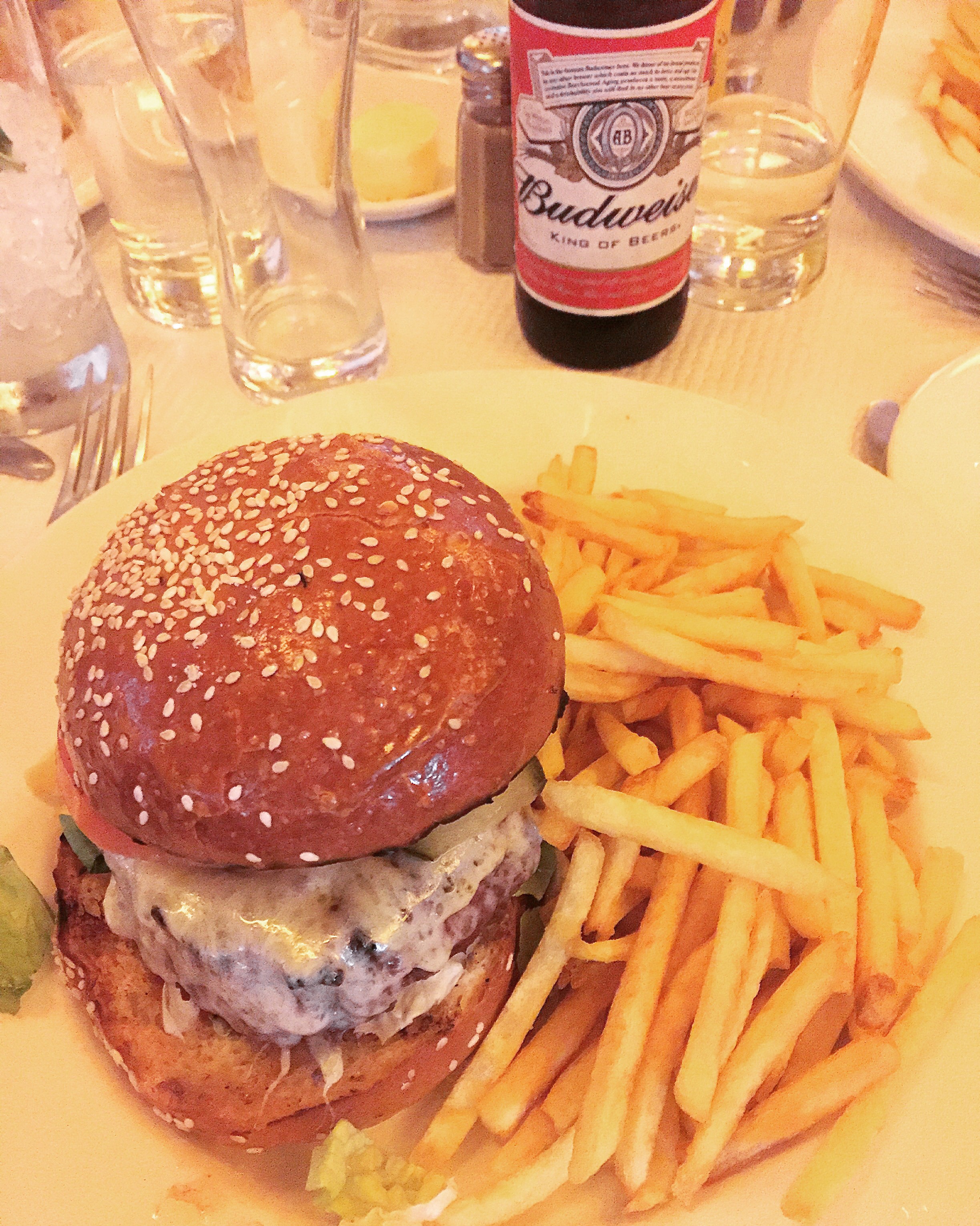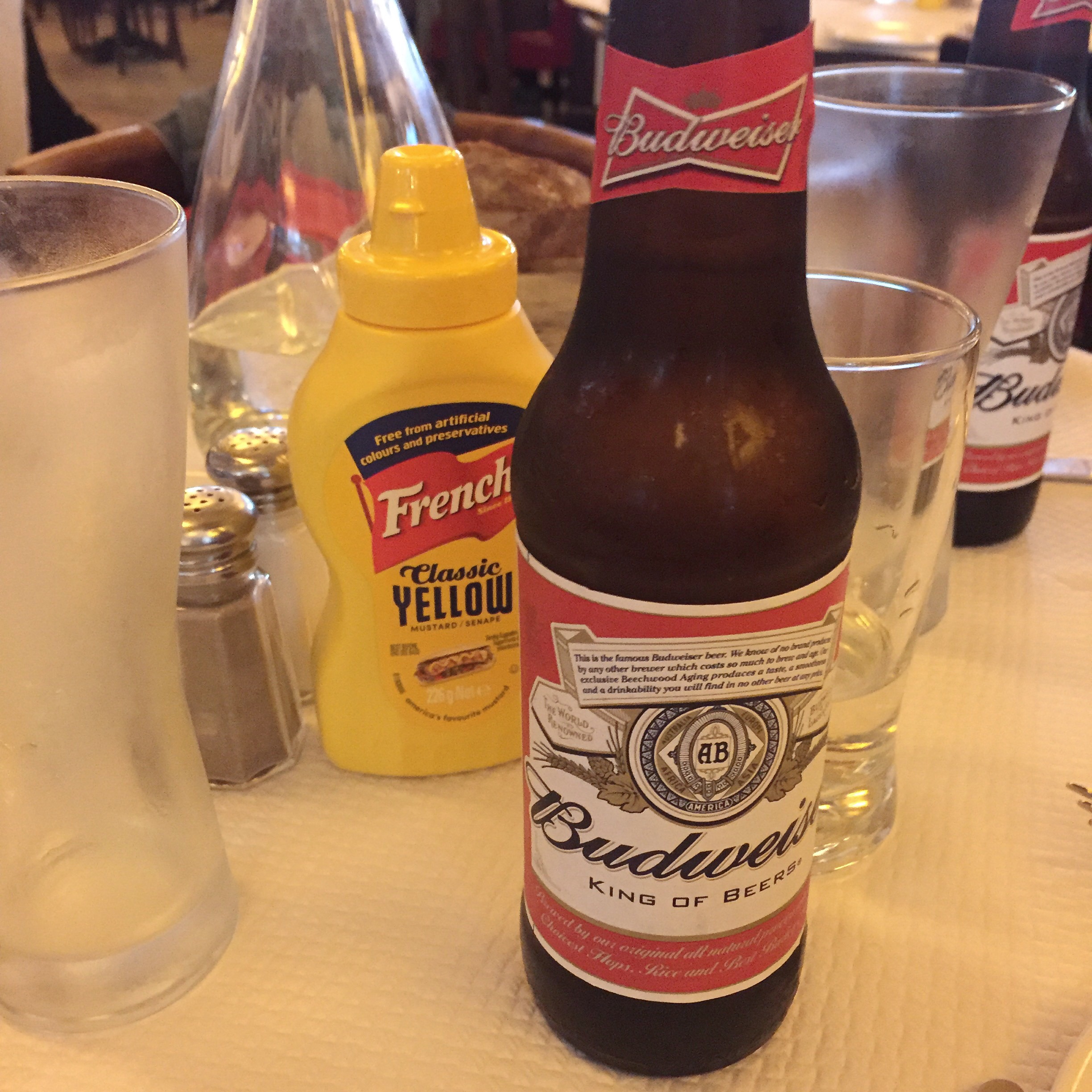 The menu was contrived, but adorable. Offering first a drink–a Budweiser or some cocktail that had nothing to do with America, but I don’t think they knew that. Next, we had our choice of Balthazar’s gourmet versions of a hot dog, a cheeseburger, or the macaroni and cheese. I opted for the Bud bottle and burger and fries. Later, it this was all brought to a close with their take on an apple pie. My outfit was approved, so the whole experience was on the house. I threw in a tenner for gratuity and that was my Fourth of July.A cold one at Balthazar, London