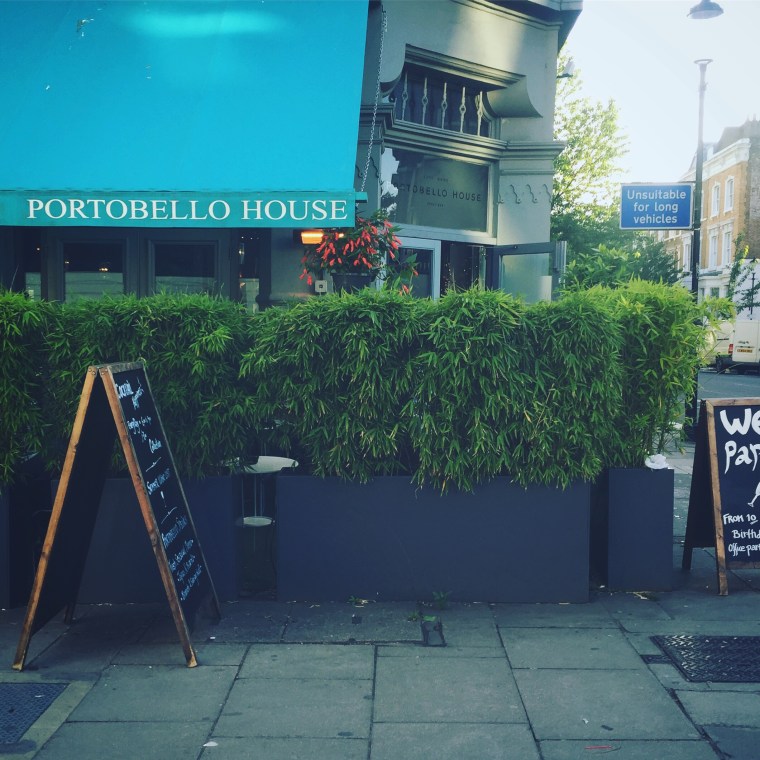 The Portobello House calls itself a “Boutique Hotel.” I think that term is used wayyyy too loosely and pretty much describes any space that is small and has some eclectic decor. Since I have never stayed at Portobello House or seen any of the hotel rooms, this review is solely for the ground floor bar and restaurant that wraps around the front of the building. Located right on the corner of Ladbroke Grove, in Notting Hill, Portobello House has the quaint and colorful exterior that you would expect in such a darling neighborhood. The inside, however, is anything but. After I spent some time in the restaurant, I was reminded of something a girl I knew once said. I thought she lived by the church near Portobello House, but she corrected me by stating “No, no. I live on the posh end of Ladbroke Grove.” I didn’t care for the comment (or even her after that attitude), but really, after spending a lot of time on the north side, you realize there is definitely a posh end.