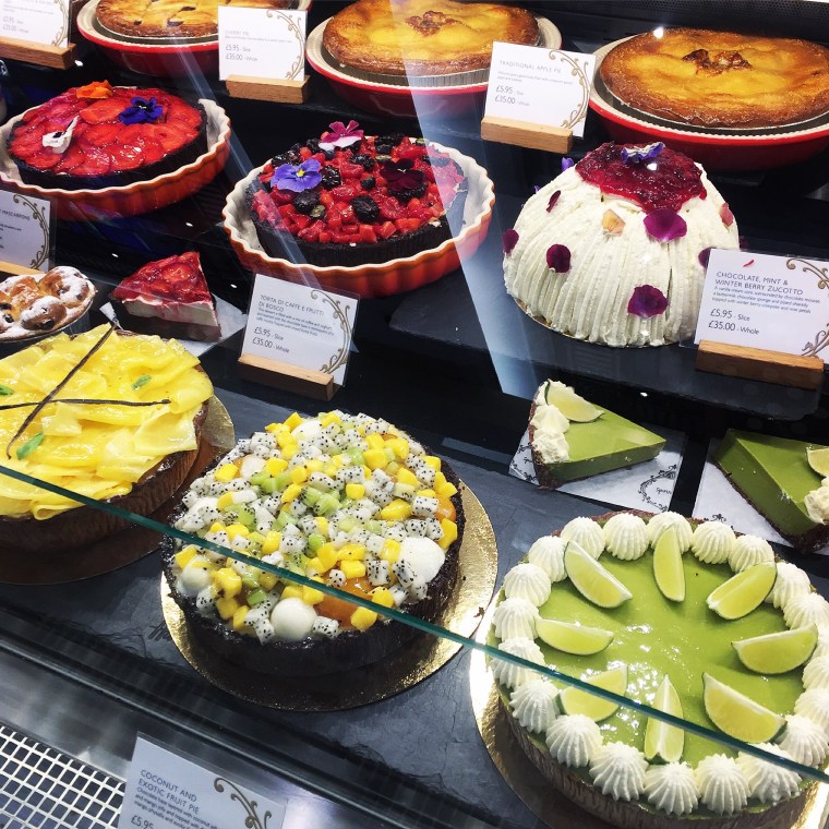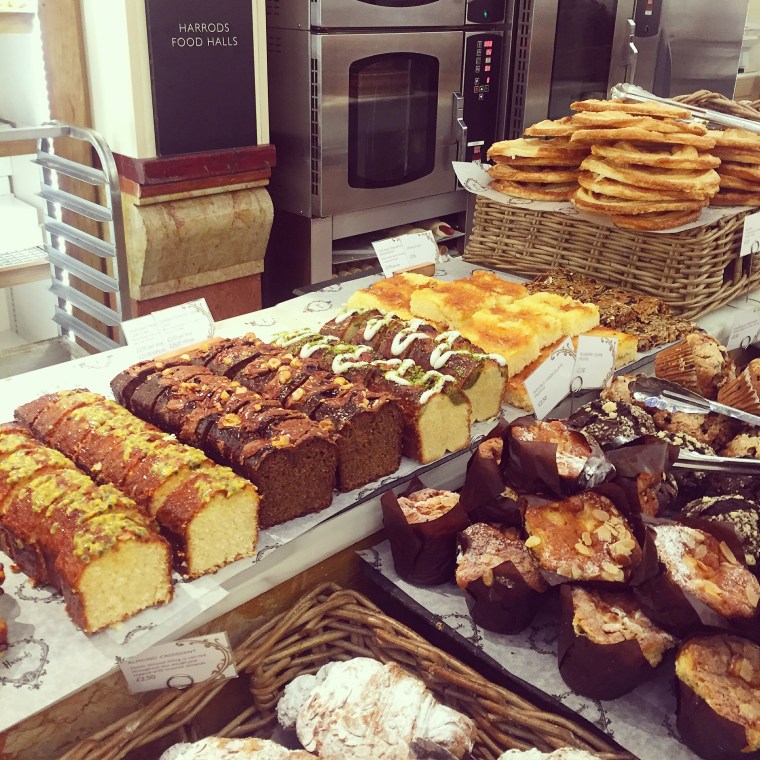In the next room, you’ll find the prepared food section. Every type of food you could dream up is in there, perfectly cooked, decorated, arranged and packaged in the curved glass cases. There are casual items, like croissants and other pastries to grab with a quick coffee, or beef jerky loose and ready to be scooped into a container of your preferred size. Then there are the fancy, amazing, Instagrammer’s dream items, like rainbow-colored terrines, shiny fruit and custard tarts, and flawless cakes. And then there’s the cheese. So much cheese!Sweet dreams at Harrods, LondonFor the grown ups, Harrods, London