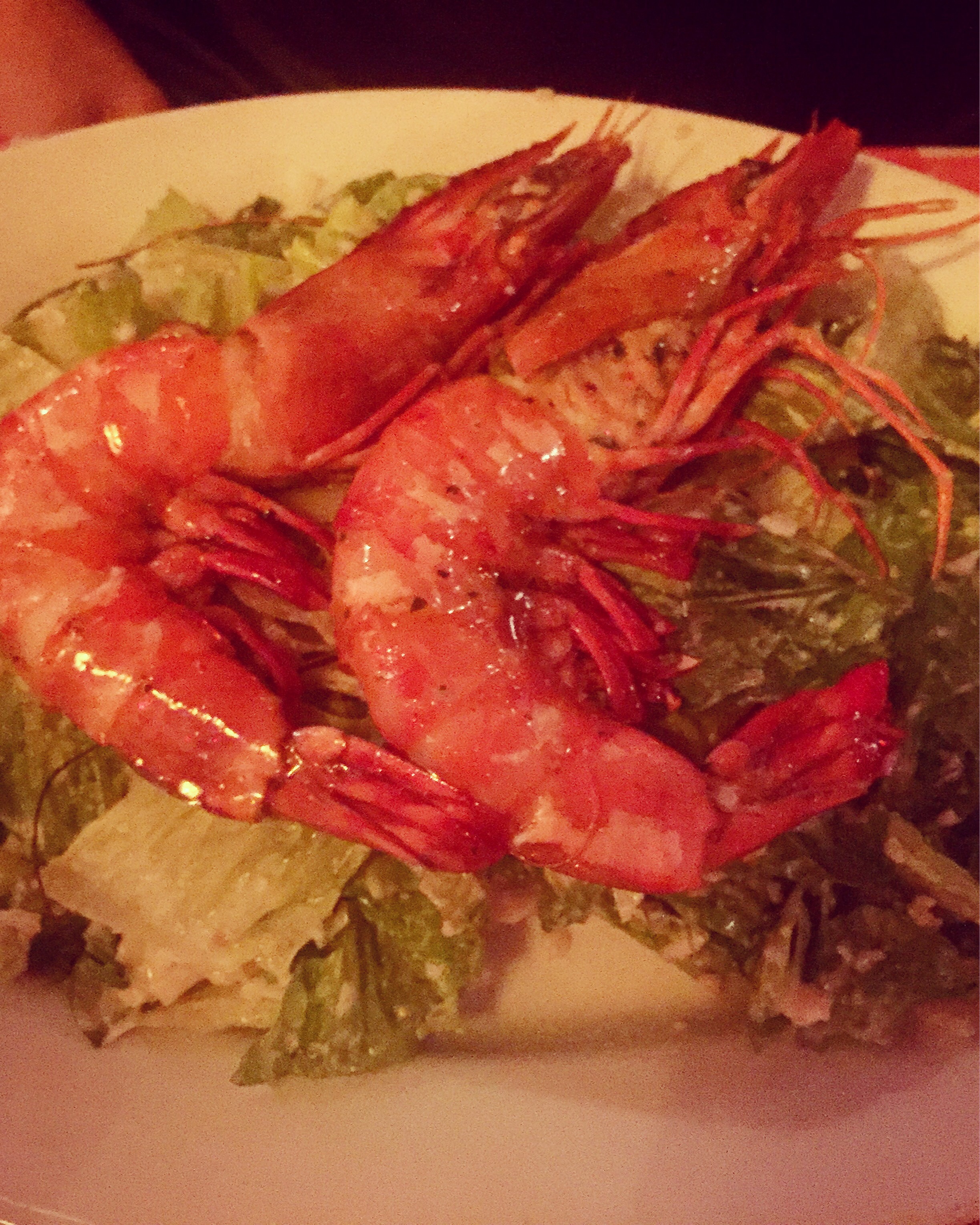 Even though the night’s special was tempting–all you can eat fajitas and a cocktail for £20–my girlfriend opted for the healthier choice of the shrimp Caesar salad and I stuck to my guns with BBQ. Our entrees arrived pretty quickly and, boy, were they impressive! London is the land of little shrimp, something I struggle with here, but my friend’s salad was topped with two of the largest I had ever seen. I was instantly jealous of a salad, imagine that! That was until they put down my platter. I had the ribs/BBQ chicken combo with a side of cornbread and the mac and cheese.